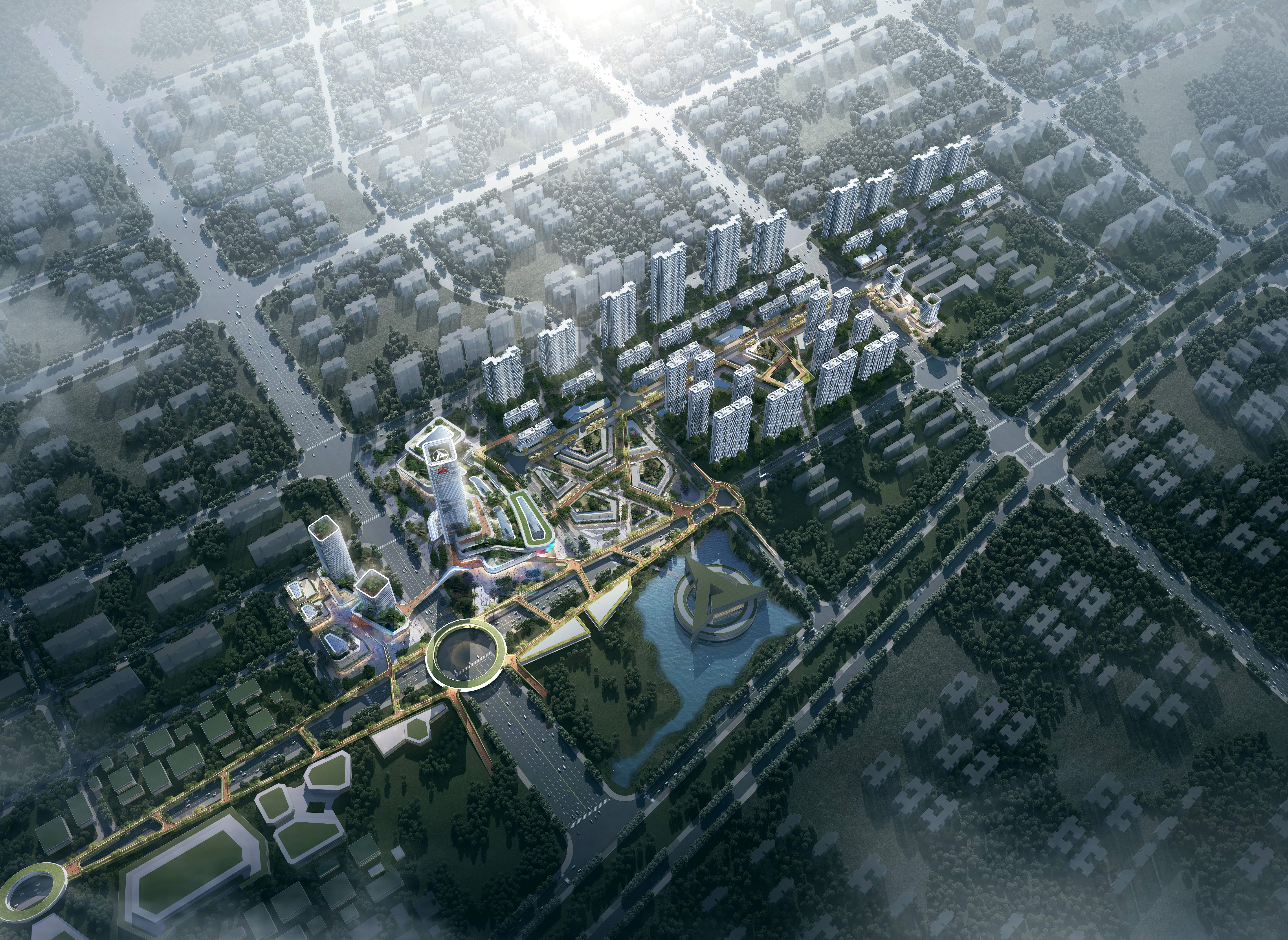 In terms of planning structure, a three-dimensional park green axis and urban ecological wind corridors efficiently connect functional areas such as commerce, business, and livable communities. In terms of transportation systems, green corridor bridges form a slow-mobility system connecting ecological nodes such as sky gardens, pocket parks, vibrant plazas, and art theaters, creating a three-dimensional ecological living environment. In terms of heritage revival, virtual reality is used as a carrier to create industrial-themed experience spaces, fostering a post-industrial context integrating art, culture, sports, and wellness. This aims to provide useful references for the construction of high-quality living environments and ecological civilization in the new era.