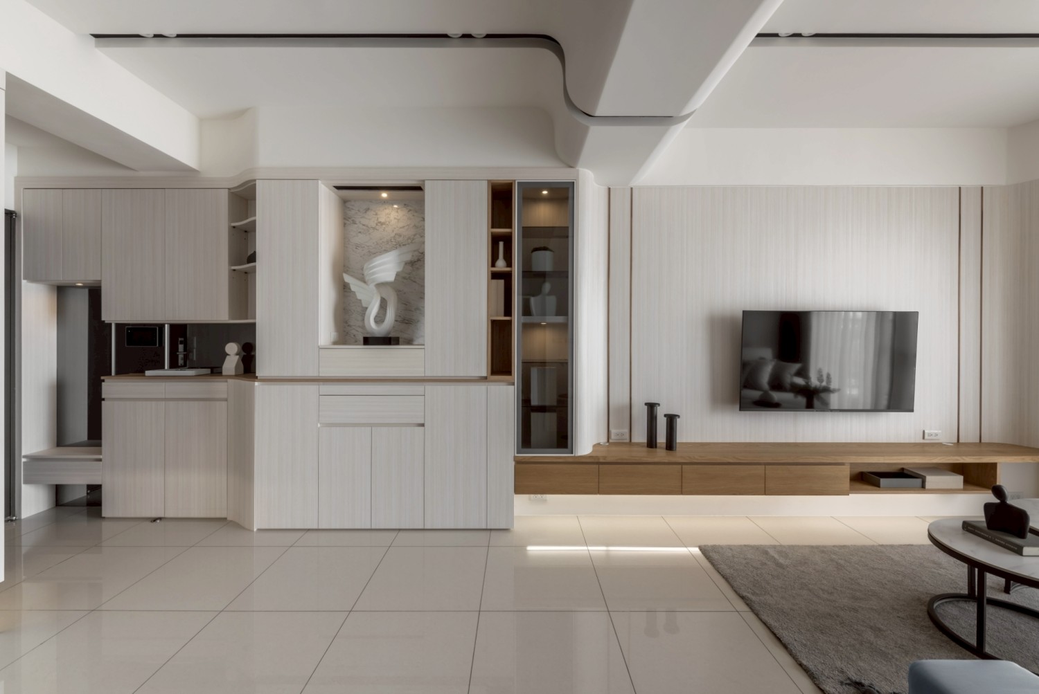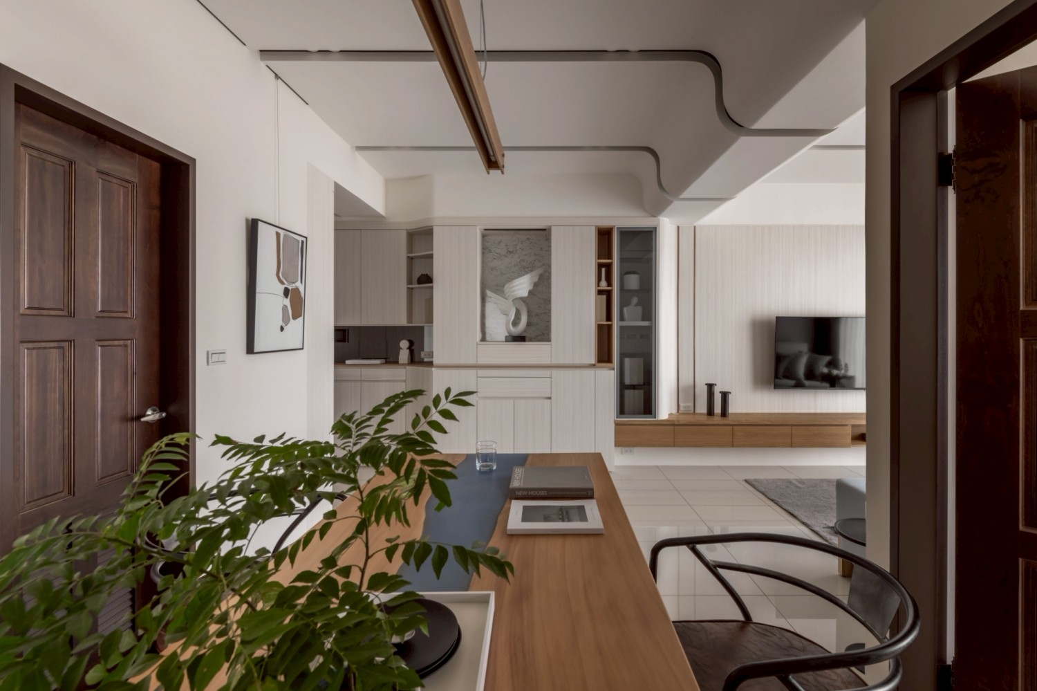 A soft white palette lays the foundation for the interior, where light and materials intertwine to create a sense of brightness and openness — composing an unhurried poem of life. The public area features an open layout that expands visual depth, allowing the dance of light and shadow to flow freely into every corner, gently revealing the mellow and graceful rhythms of daily life.