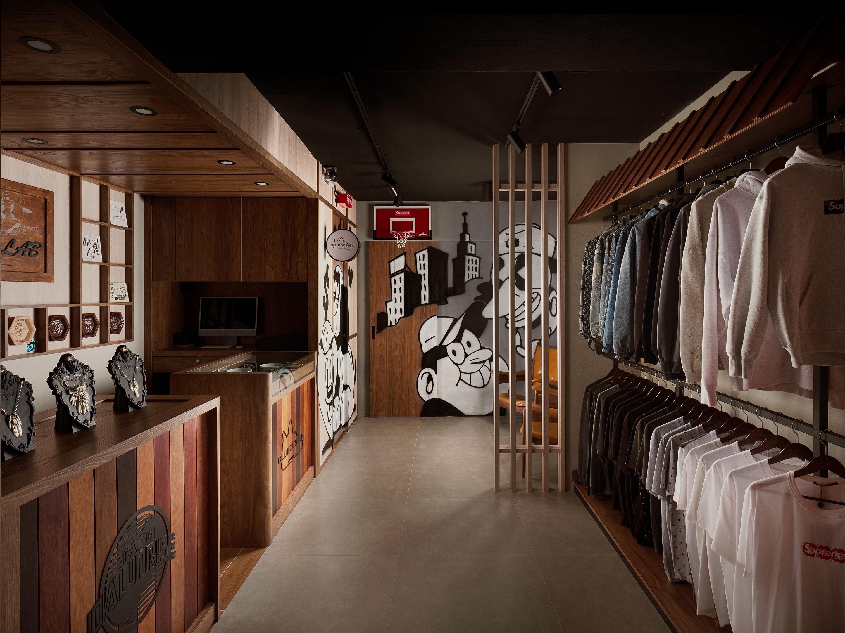 The heart of this project lies in expressing the brand’s spirit through space—quietly connecting people to the values behind it. In the beginning, the team spent time learning the founder’s story and came to see the brand not just as fashion, but as a reflection of craftsmanship and cultural awareness. The design blends Eastern calm with Western street culture. On the first floor, dark wood, torii gates, octagonal displays, and timber frames evoke a modern shrine, grounding the brand in ritual and identity. On the second floor, maple elements create a calm, immersive scene that highlights the brand’s creative and collectible nature. The result is a space that was well received by the client and allows visitors to feel the spirit of the brand through stillness, materials, and light.