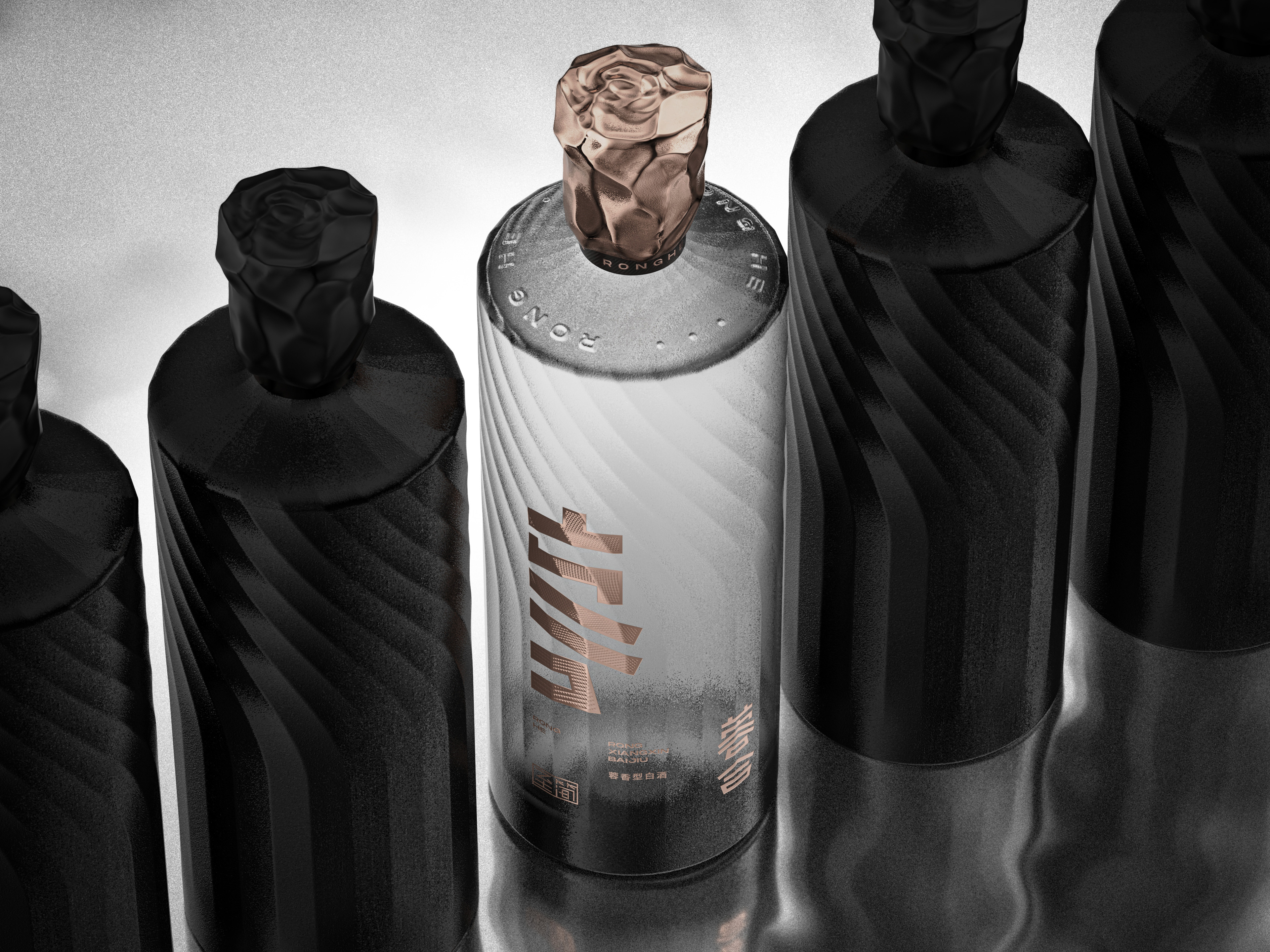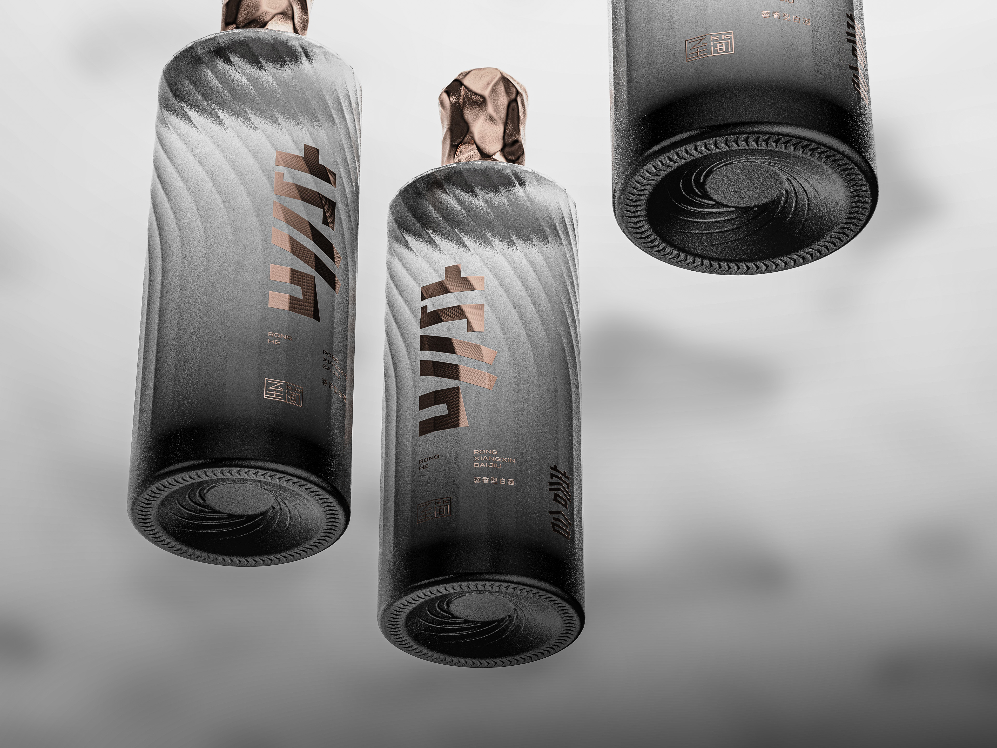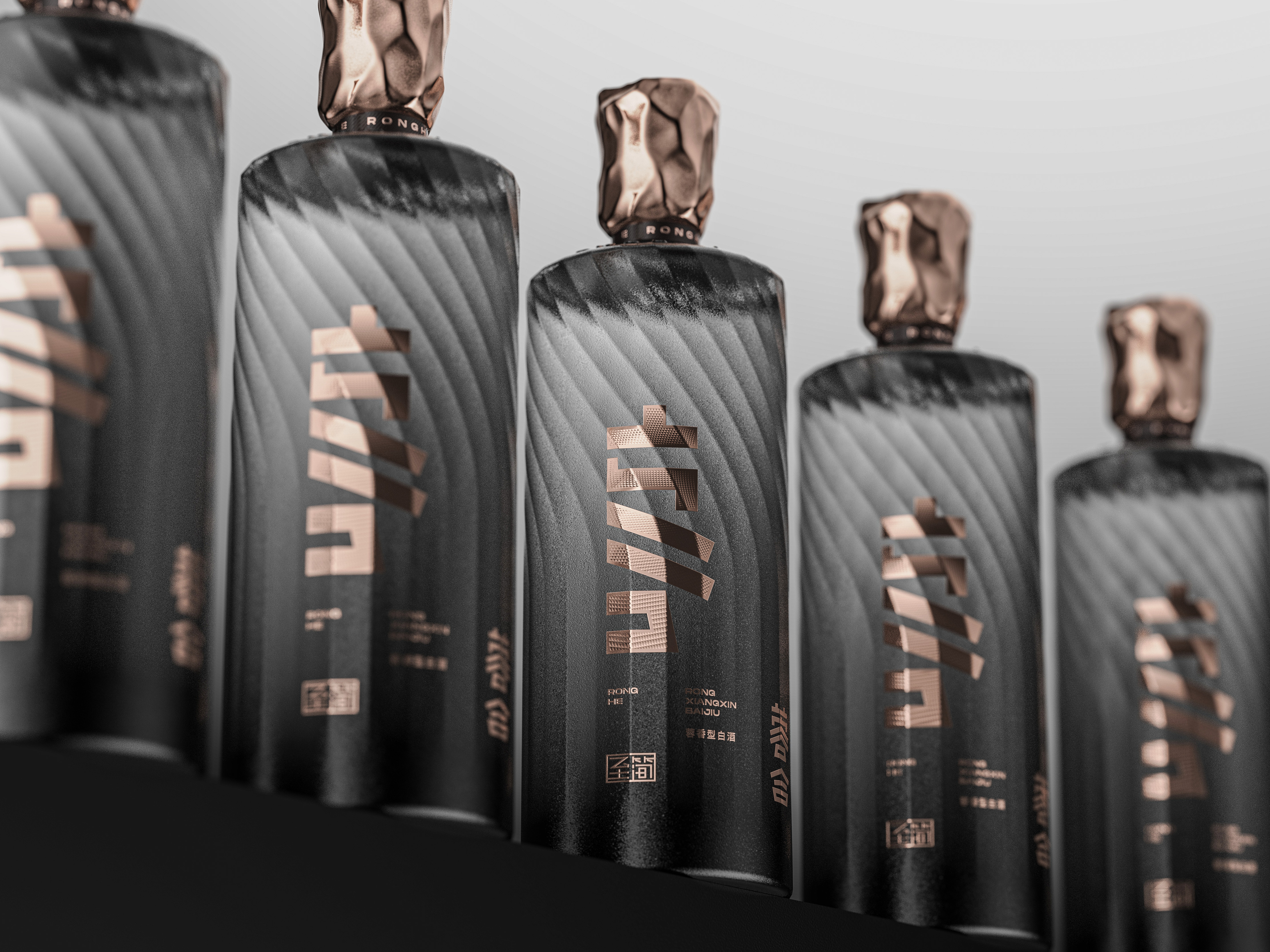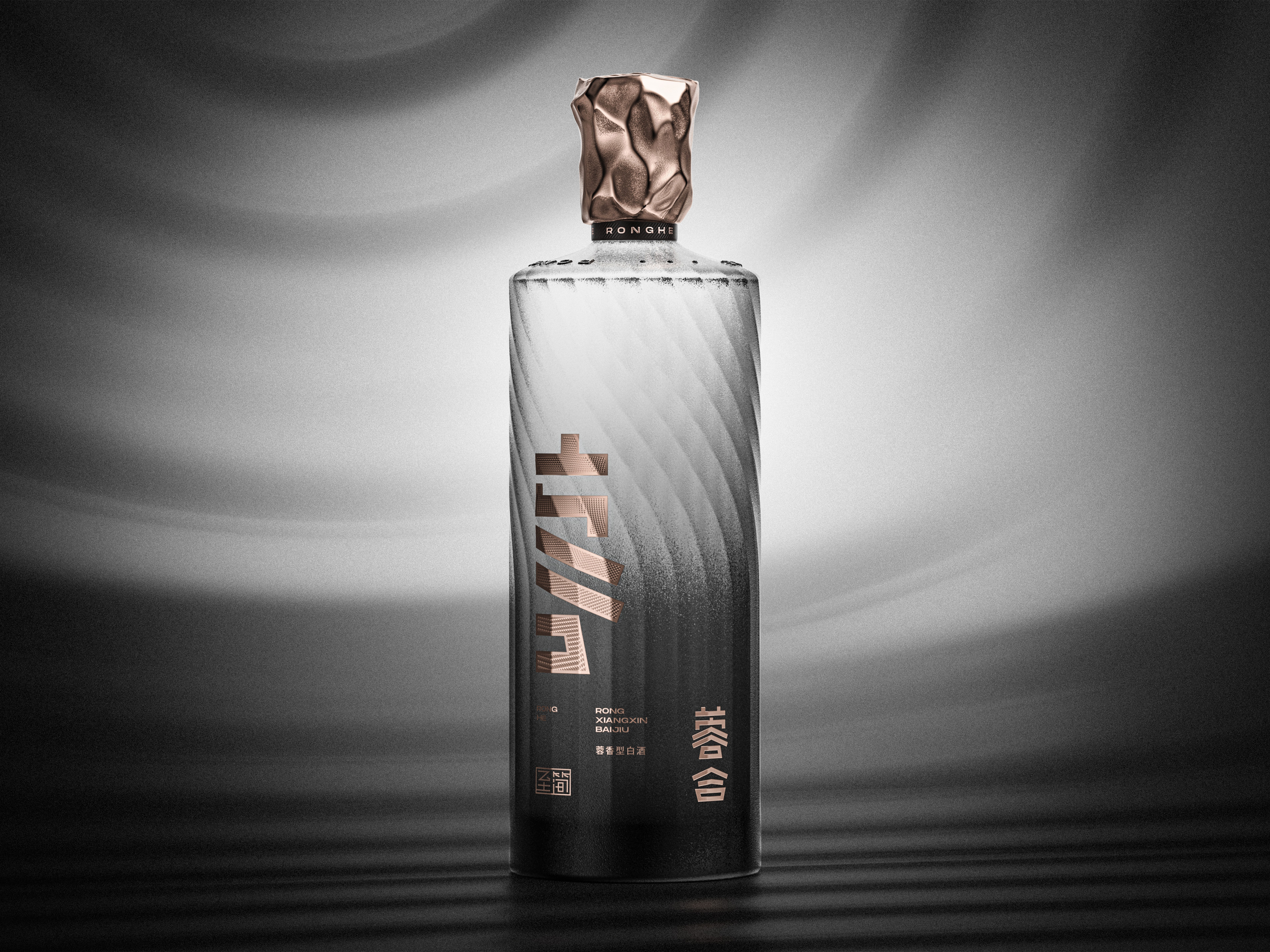 Topped with a metallic-finish cap shaped like an artful blooming flower—representing the city blossom—the design harmonizes with the “蓉” character motif. This thoughtful detail reinforces the brand’s cultural identity with subtle artistry. By eliminating all non-essential elements, the overall aesthetic achieves a clean, elevated presence that communicates Ronghe’s unwavering commitment to quality and cultural depth. It offers consumers a premium experience—one that engages both the eye and the palate.