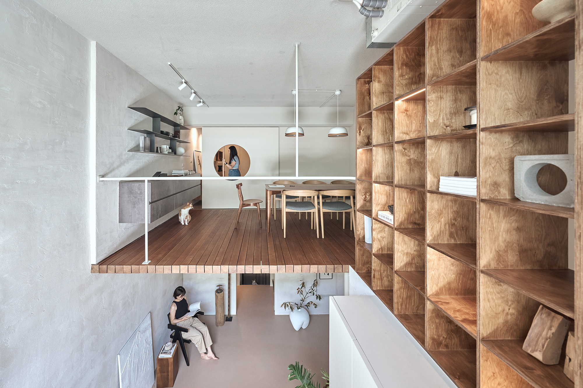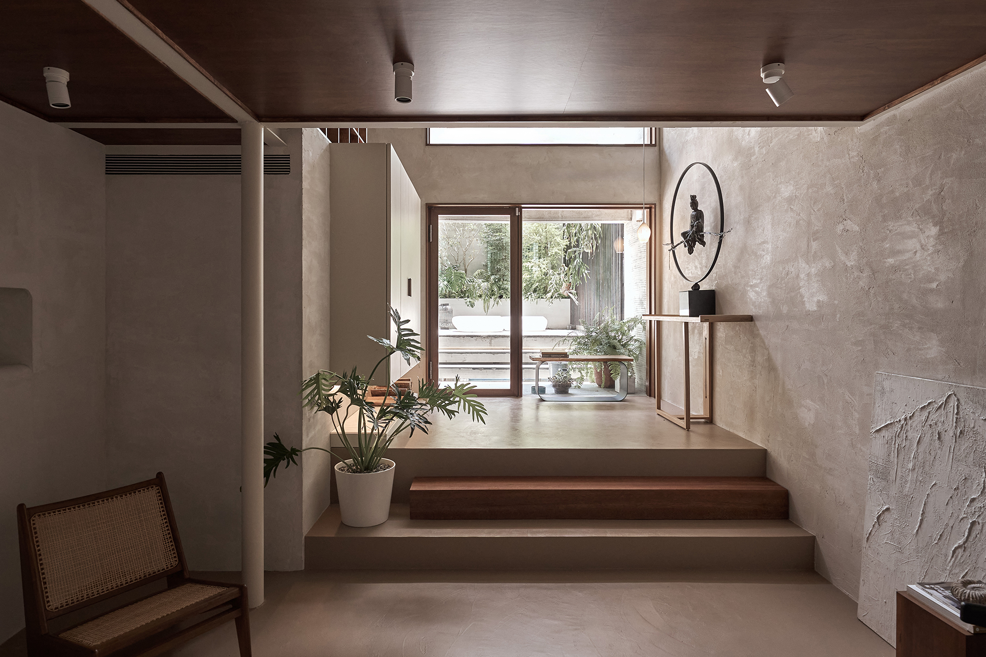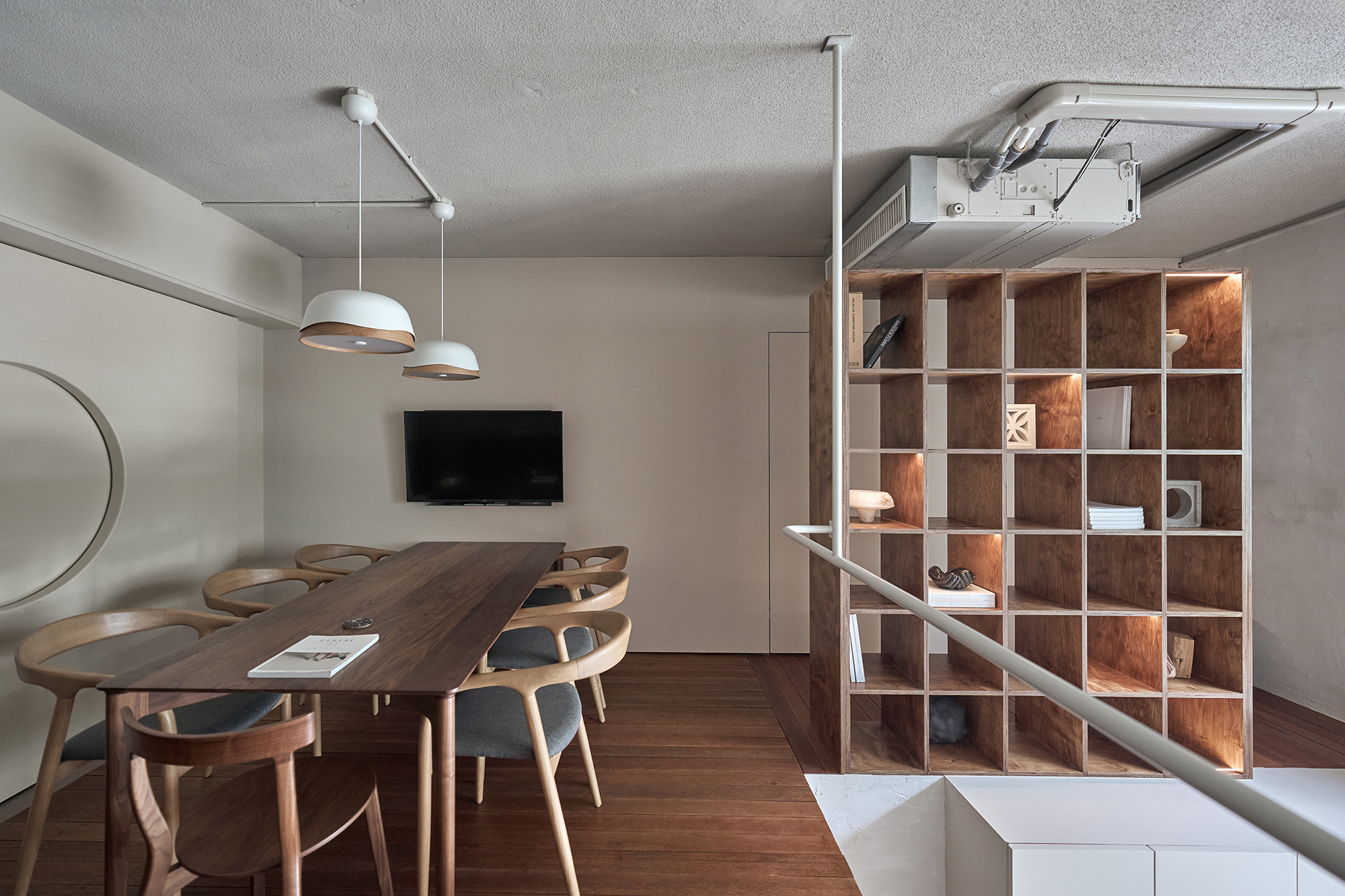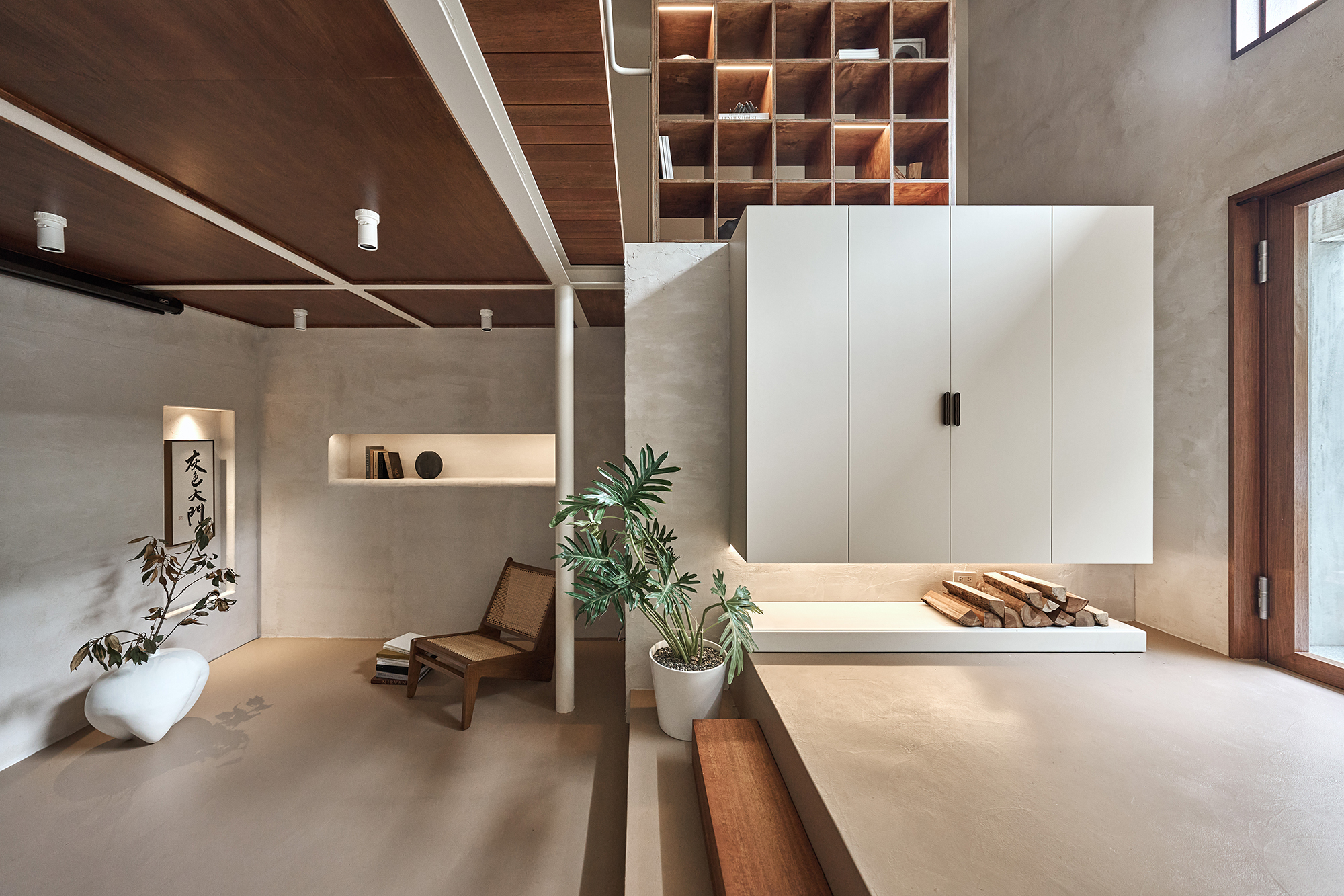 This project entails the transformation of an old house into a modern office space, seamlessly integrating Japanese Zen principles with the aesthetics of wabi-sabi. By doing so, it breaks free from the traditional, austere atmosphere often associated with conventional offices. The design masterfully emphasizes natural simplicity, deliberately opting for raw materials such as stone and solid wood. These choices not only highlight a rugged texture but also imbue the space with a sense of vitality and warmth. Furthermore, the innovative use of a lofted mezzanine combined with an open layout effectively blurs the boundaries between floors. This architectural decision enhances spatial freedom and promotes a dynamic environment where creativity can flourish. Ultimately, this design aims to create a relaxed and inspiring workplace, inviting individuals to engage, collaborate, and innovate in comfort.