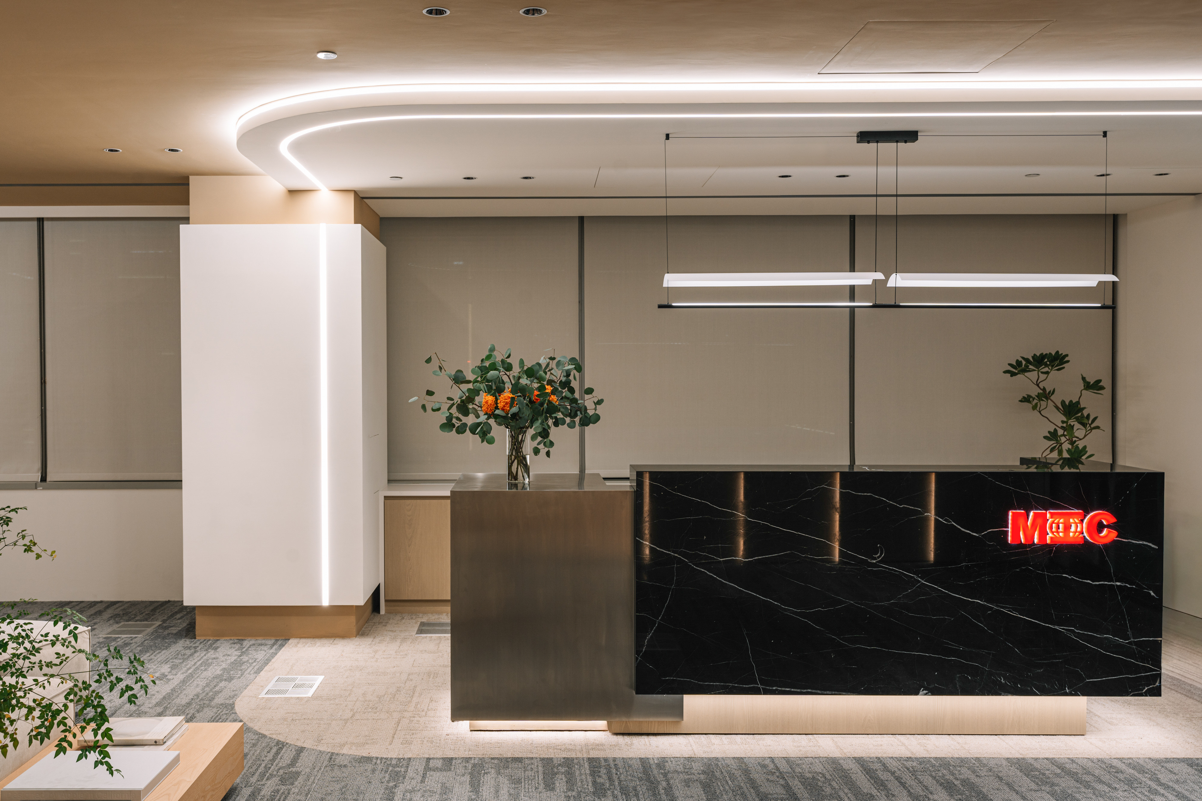 Realm of Convergence is a 1322 square meters space dedicated to international and high-level conferences, located in Nangang Software Park Phase II. Inspired by the connectivity of a space station, the design integrates eight large and four VIP meeting rooms, offering nearly a hundred possible configurations via folding glass partitions and movable walls. Light zoning defines function—cool tones for focus, warm milky brown shades for relaxation. Sound insulation extends from raised floors to ceiling cavities, supported by both domestic and imported panels.