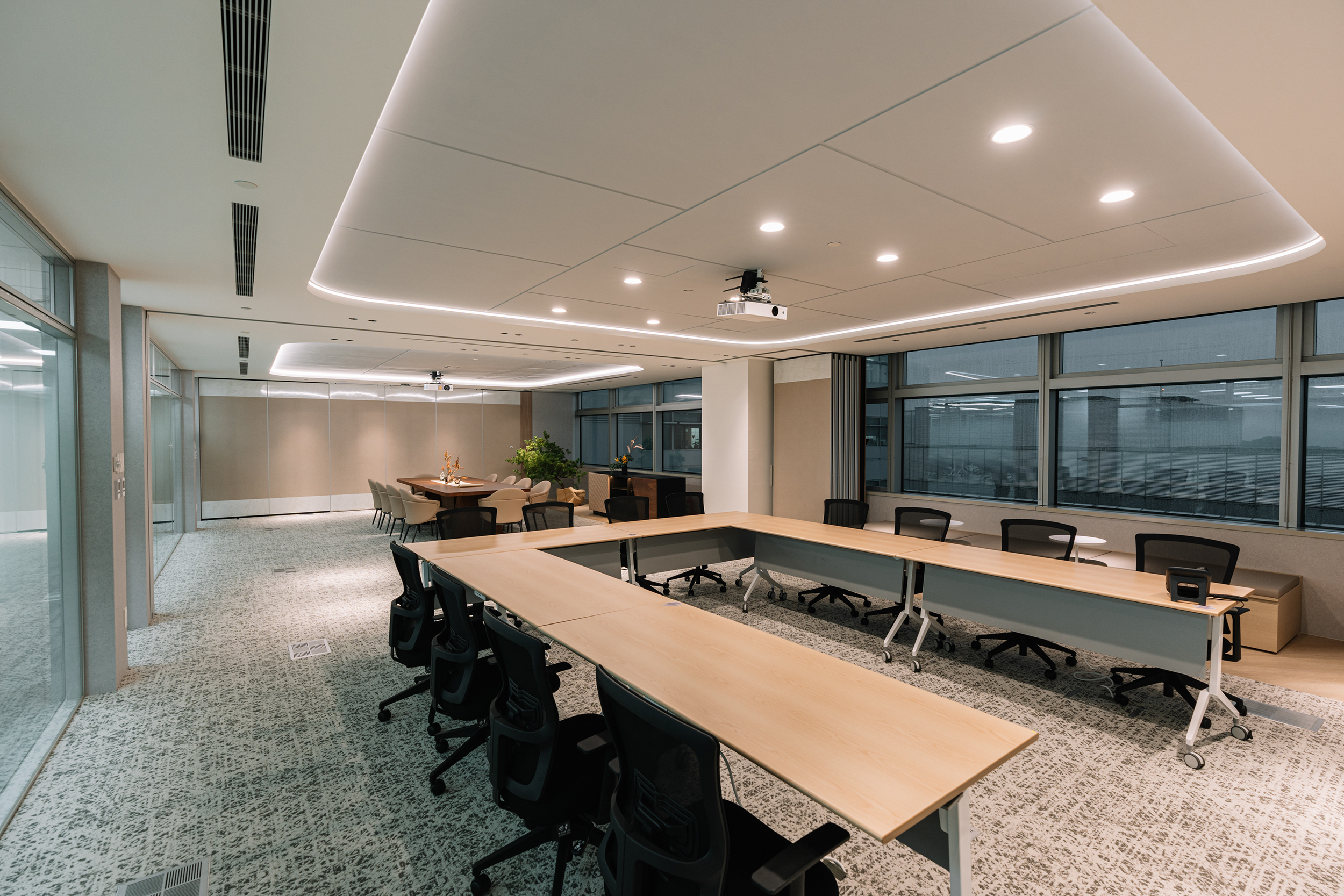 A multimedia system allows cross-room synchronization with intuitive UI support, suitable for global exchange and product launches. Green building materials and ESG-certified panels minimize environmental impact, while ultra-clear glass ensures daylight continuity. Modular partitions and raised floors allow future reconfiguration. Since opening, the floor has become a flagship venue—simultaneously a corporate showcase and an efficient platform for global communication.