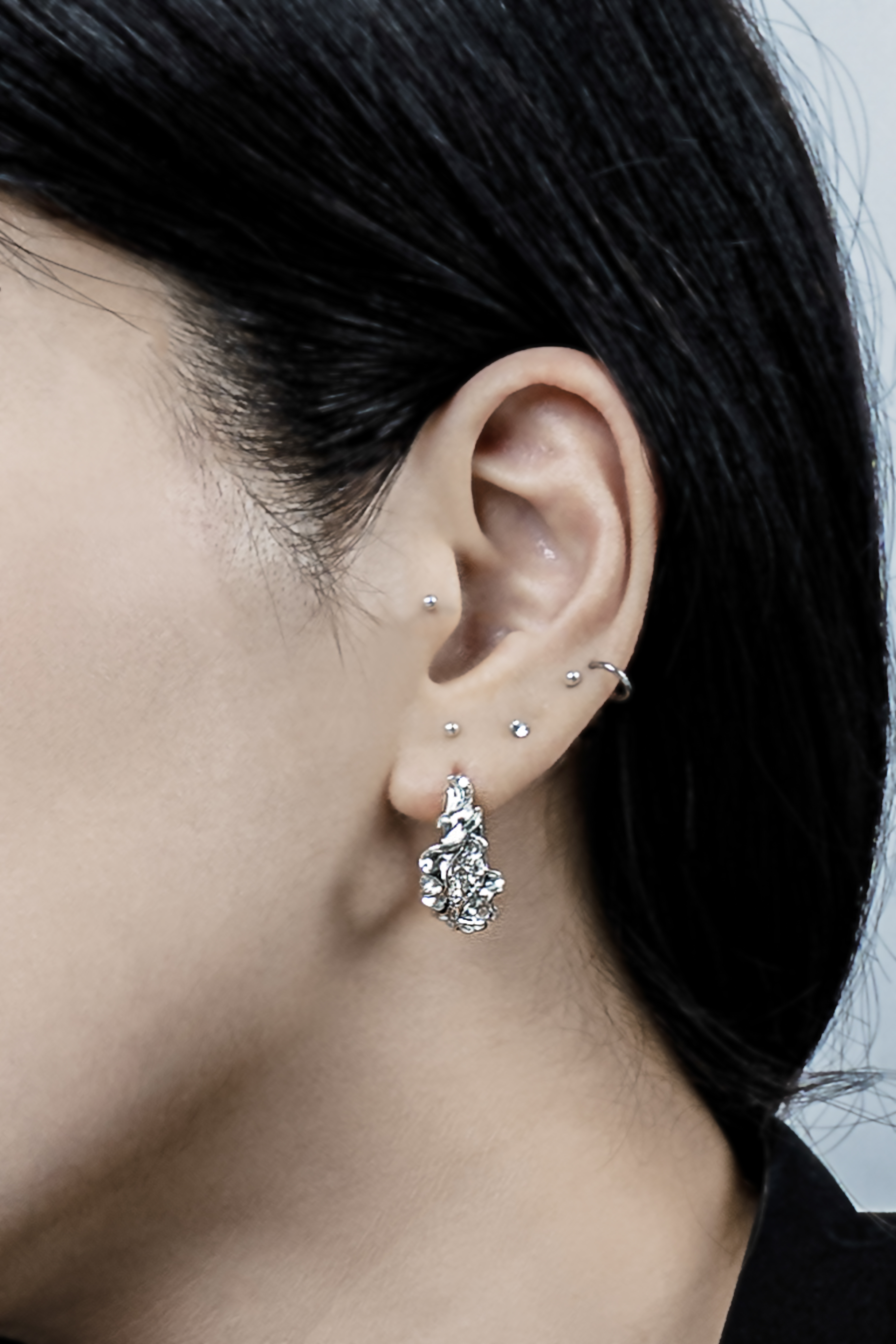 Frill Earring by Mitsu Noib is a sculptural jewelry piece born from the tension between softness and solidity. Inspired by the Renaissance pursuit of harmony, beauty, and craftsmanship, the earring transforms delicate fabric ruffles into a wearable architectural object. This piece captures a paradox: metal that appears to move. Through high-difficulty digital sculpting using ZBrush and hollow casting techniques, it achieves a fluid, dynamic form while maintaining structural integrity. The folds are neither symmetrical nor ornamental—they emulate the moment fabric is caught in air, suspending tension and grace in a fixed medium. Mitsu Noib, a high-end jewelry brand, challenges the boundary between object and adornment. This earring is not merely decorative; it is an exploration of movement, density, and perception in metal. By reinterpreting the Renaissance ethos of bridging function and emotion, the Frill Earring proposes a new vision of contemporary jewelry: one that is sculptural, experimental, and rooted in artistic heritage. Mitsu Noib asks: what if jewelry wasn’t decorative, but definitive?