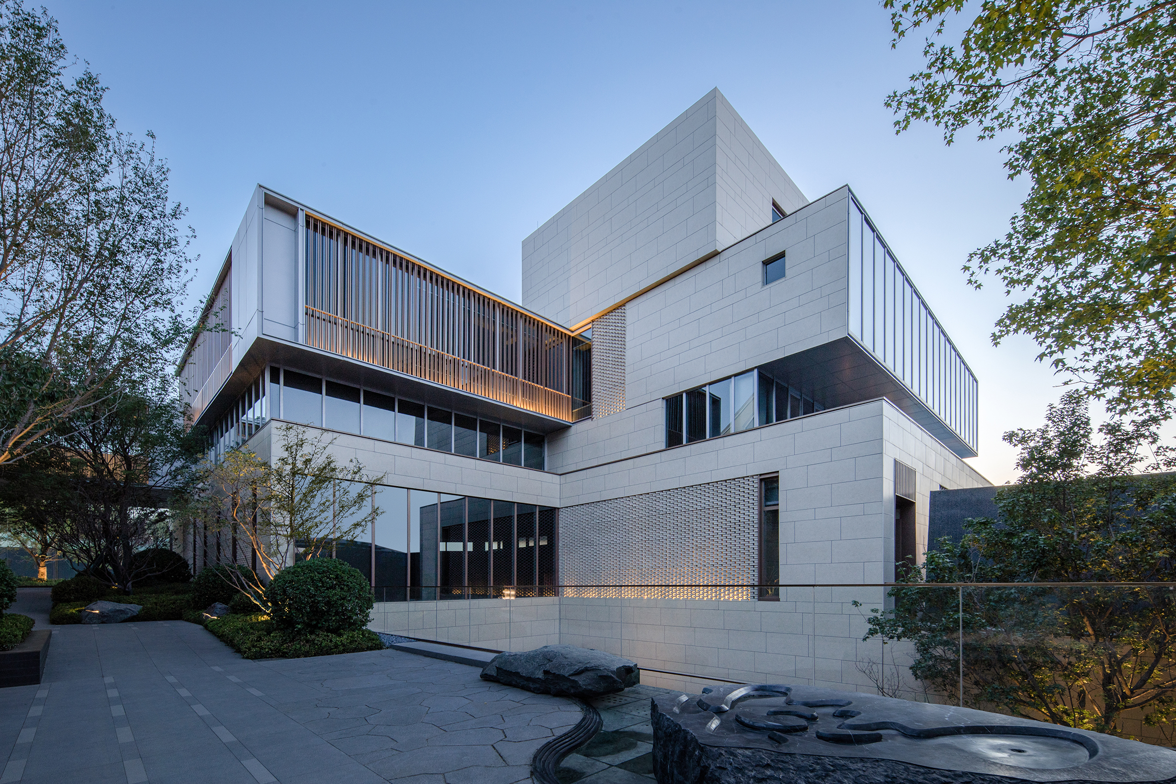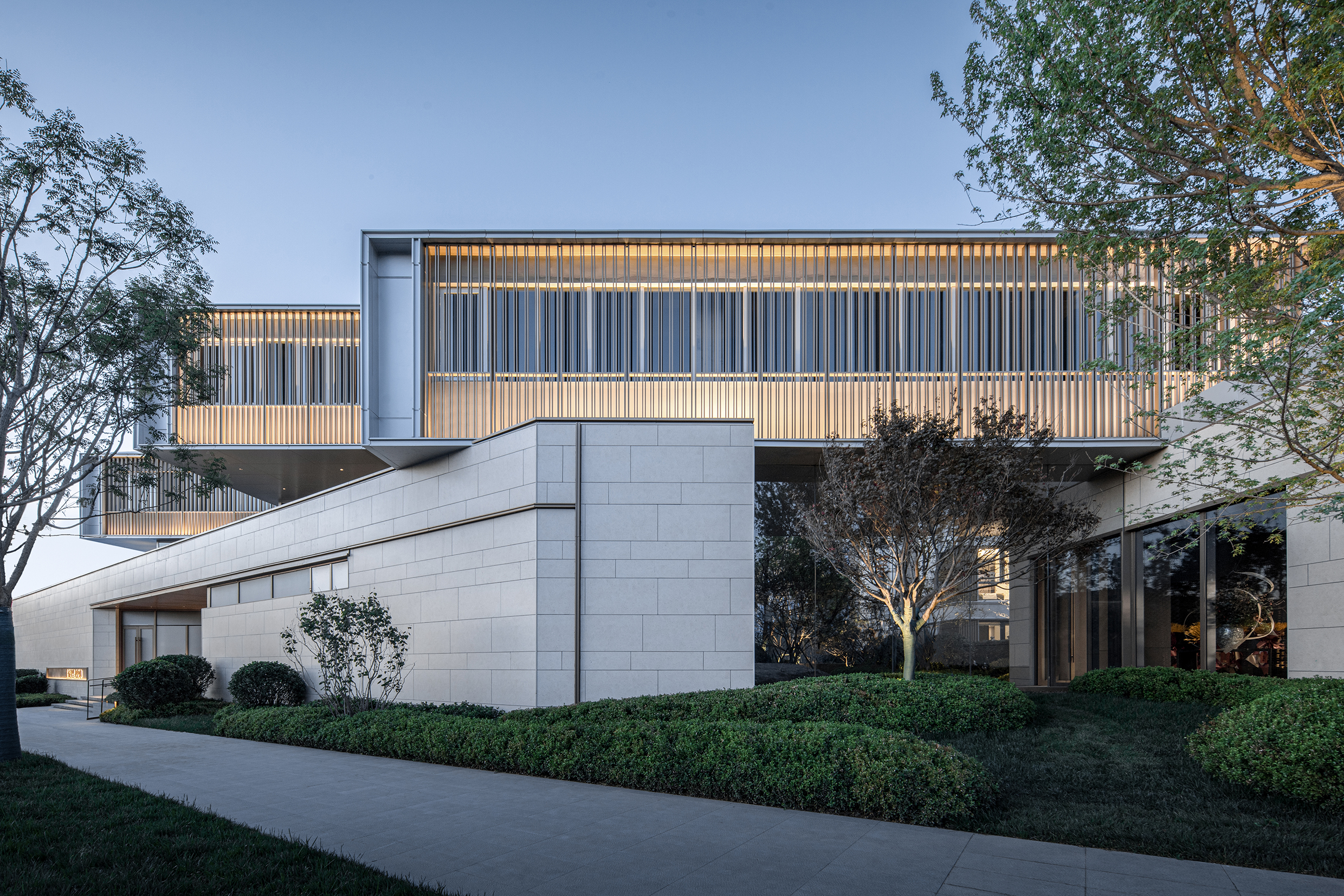 This project skillfully adapts to the height difference of the site, which is higher in the north and lower in the south, and constructs a spatial structure centered on the central landscape. Supporting functions are organically integrated with the main entrance, and a highly prominent street-facing interface is created based on the terrain. The original roof water tank room has been integrated into the design, echoing the concept of "viewing mountains" and achieving a deep integration of architecture and landscape.