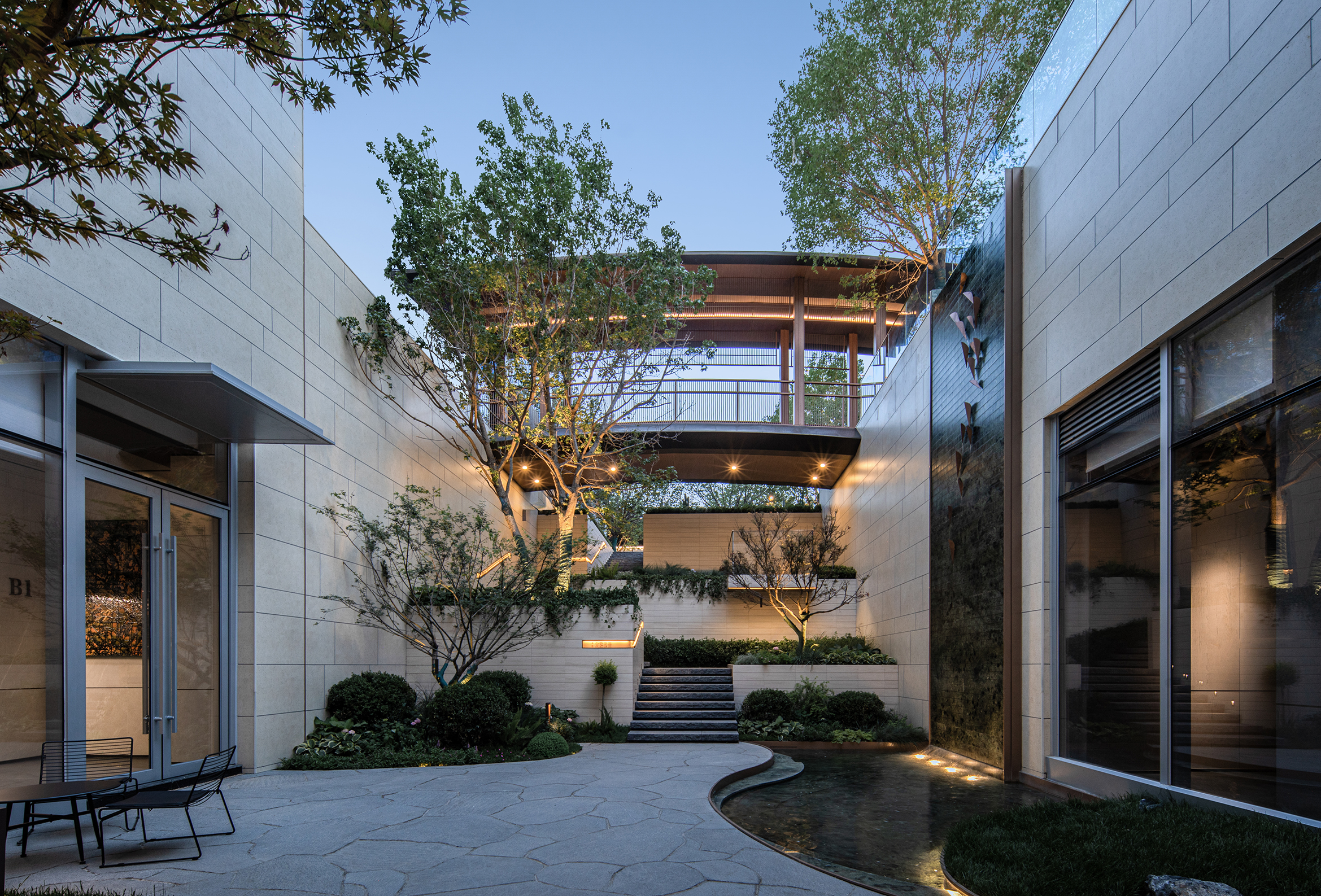 The second realm is spatial transition. The entrance to the community lobby is secluded and inviting. Following the sound of water around, one encounters cascading waterfalls; in the private courtyard, dappled shadows of pine trees dance. Guided by both sight and sound, a serene and comfortable atmosphere is created, transitioning from urban bustle to community tranquility.