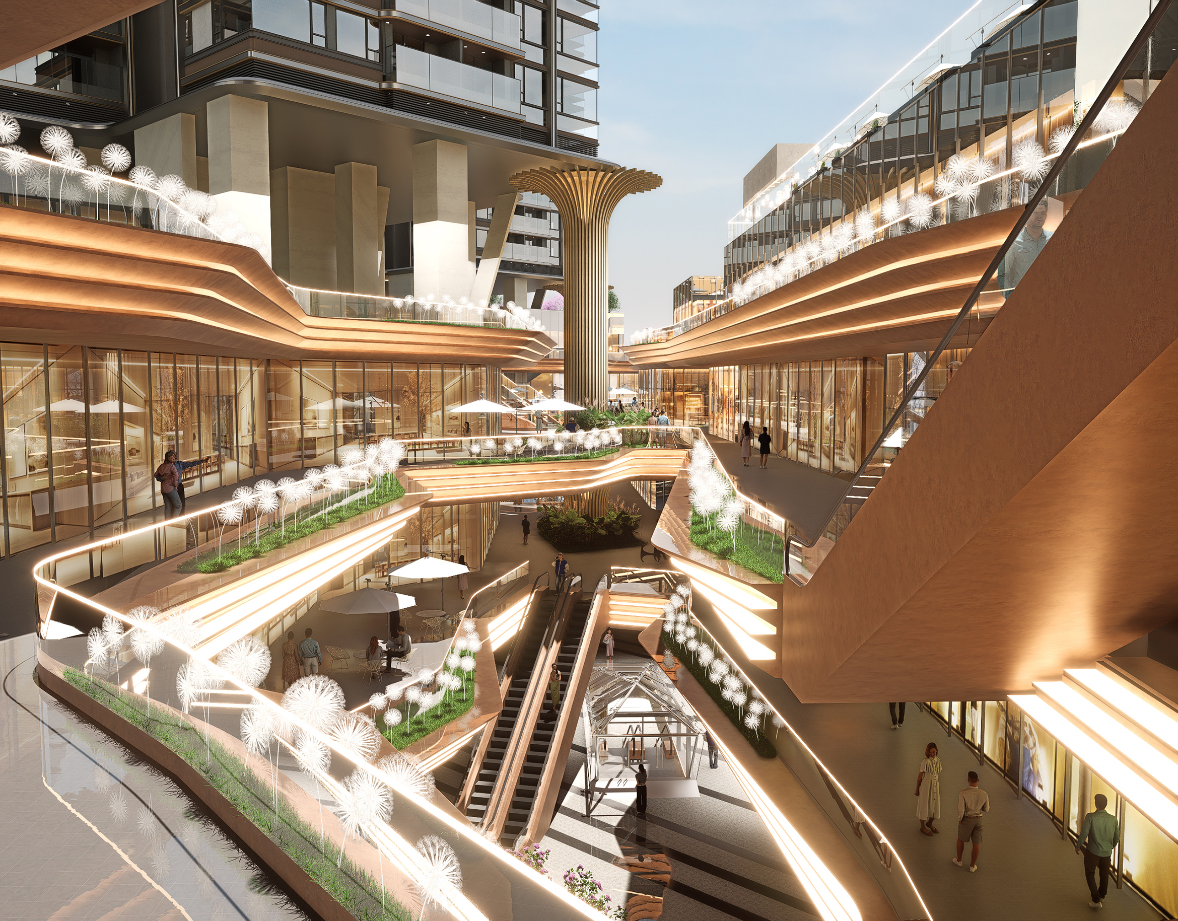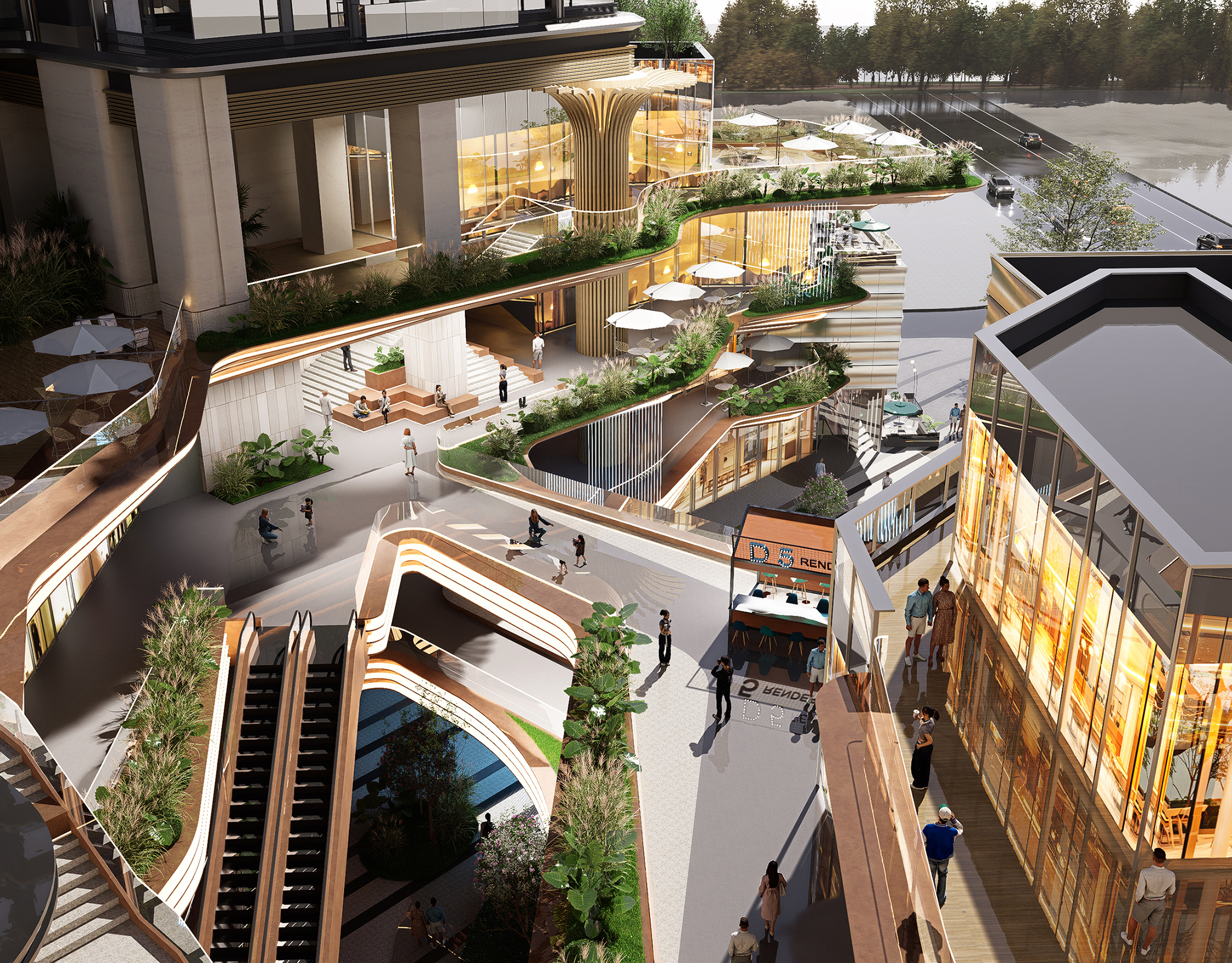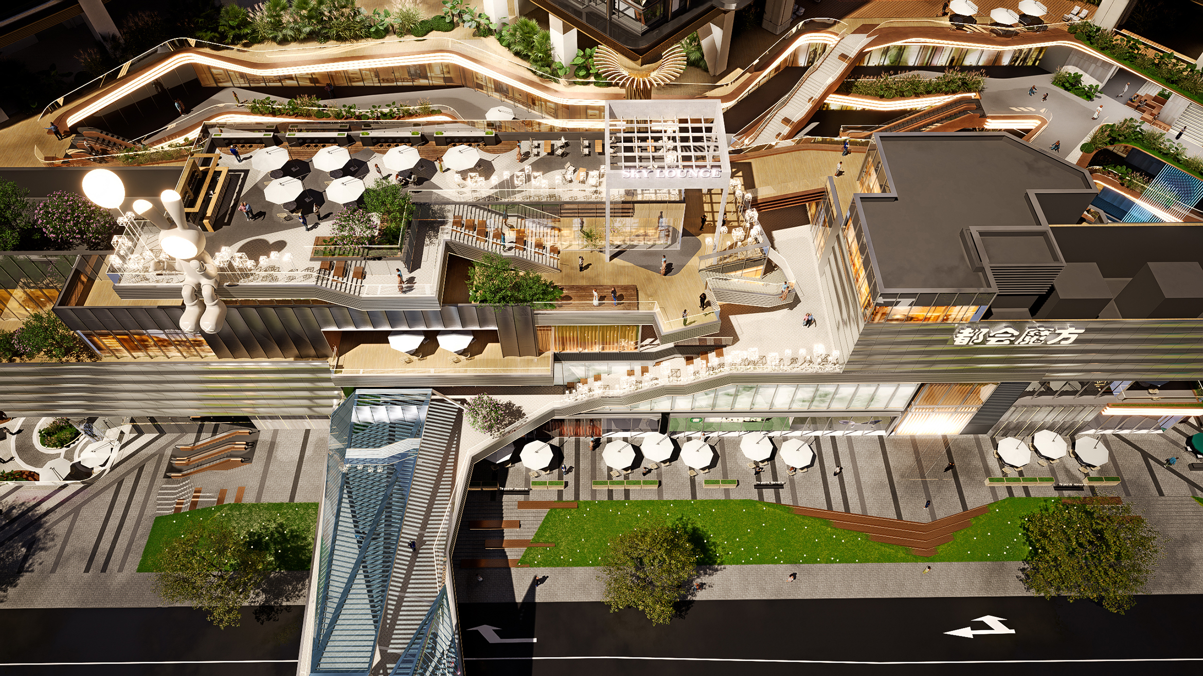 TOD is deeply coupled with scenes, and the metro is seamlessly connected to commercial circulation lines—transforming "transfer" into "strolling transfer". A multi-first-floor three-dimensional circulation system is constructed through sunken plazas, canyon-style connecting bridges and roof gardens, eliminating physical and psychological boundaries. Commercial space undergoes "urbanization" upgrade: "CITY CENTER Rubik's Cube" shapes an inspiring urban interface, "Red Valley" creates a flowing street interface, functions are arranged vertically, and horizontally connected to urban corridors. Multidimensional landscape penetration forms a three-level ecological framework of "Green Valley—Green Corridor—Green Carpet" through a three-dimensional greening system. The layout of diverse scenario-based spaces adopts curatorial commercial logic, setting up rich spatial highlights, and the multi-first-floor blocks co-build a community CITY CENTER living room.