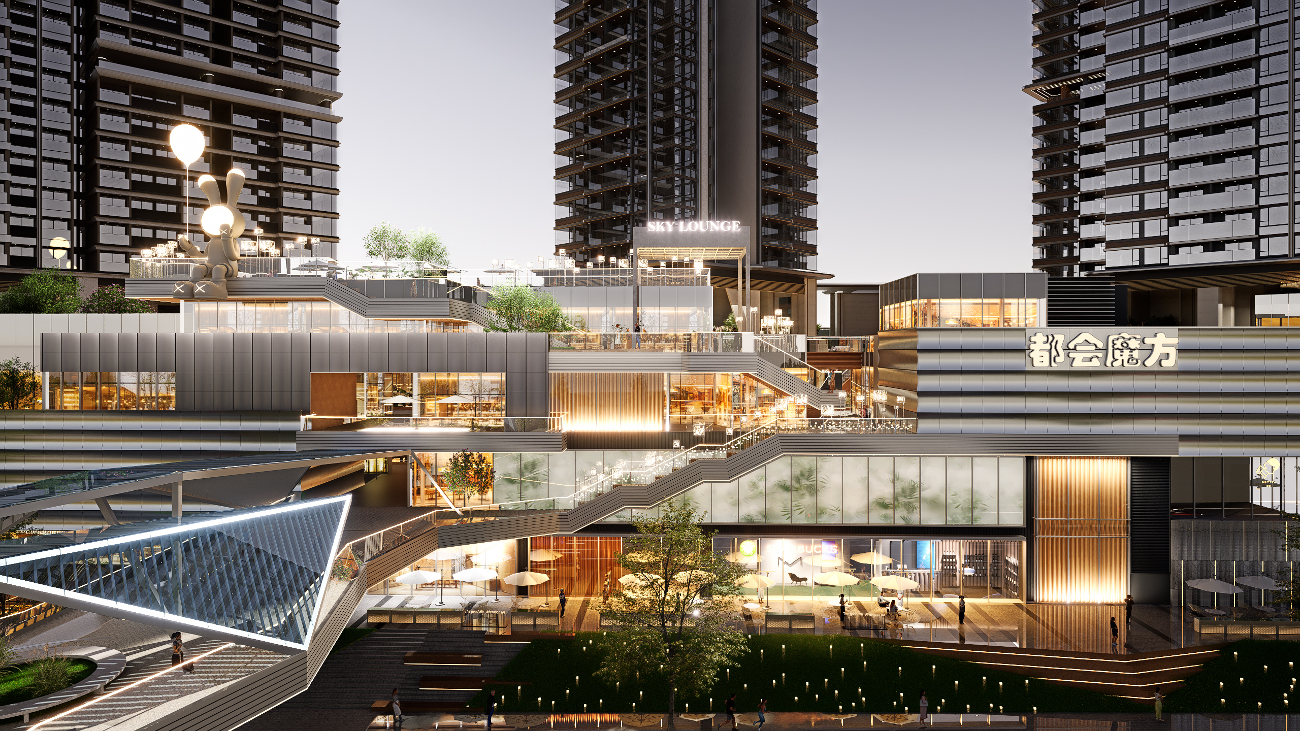 With "CITY CENTER Rubik's Cube" as the core narrative, we abandon the traditional "community supporting facilities" mindset and position the project as a "city-level destination". Like rotatable, reconfigurable and interactive urban pixels, it fosters social interaction, sharing and commercial surprises under the gravitational pull of the rail node. Longfei Avenue, as a city-level facade, establishes a landmark in the posture of the "Rubik's Cube" rotating axis; the inner street adopts the organic curves of "Red Valley" to soften boundaries, allowing nature, art and crowds to collide in flow.
