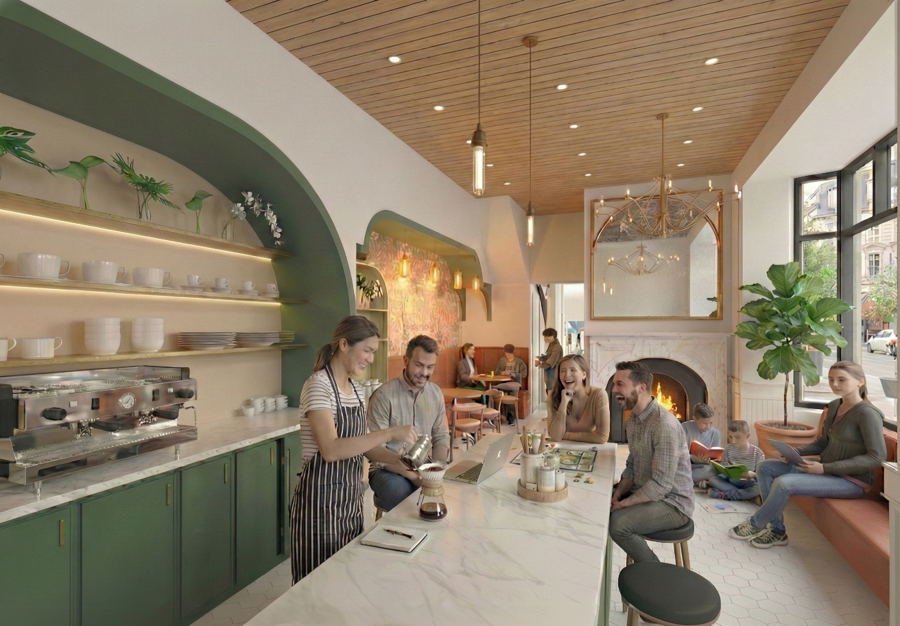 The proposal renovates a deteriorated rowhouse and transforms it into a community anchor. The ground floor accommodates a pop-up style café serving locally sourced food, ensuring that the money spent by residents circulates back into their own neighborhood. The first floor additionally provides flexible space for cooking classes and wine-tasting workshops, equipping residents with useful culinary skills.
