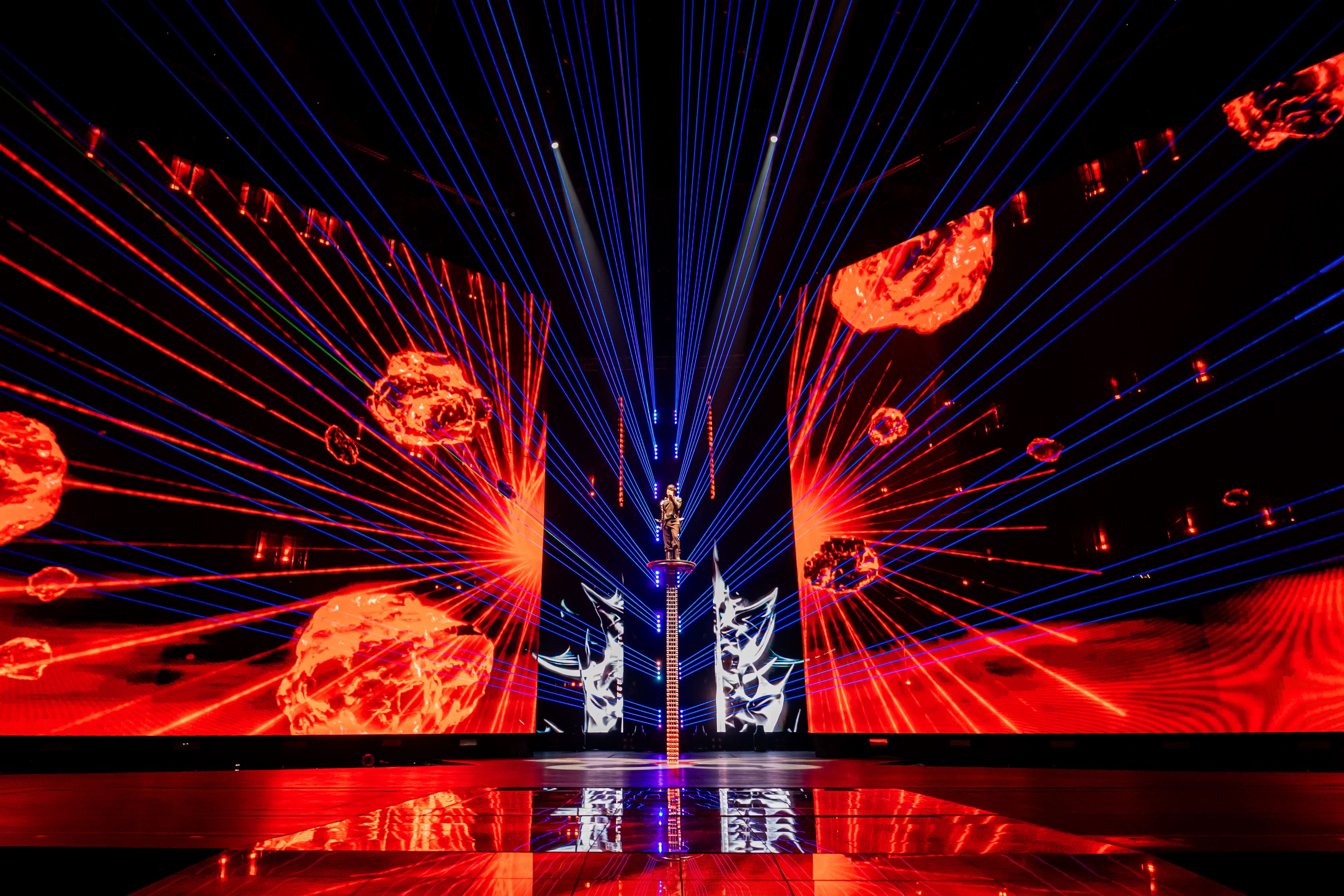 For spatial treatment, the strategic application of a mirrored stage floor extends the light trajectories, simulating the imagery of an infinitely circulating "Final Lap." Furthermore, we combined the physical light beams extending outward from the fixtures with the stereoscopic rendering of naked-eye 3D visuals to create a profound, immersive space. This approach ingeniously blurs the boundary between the real stage structure and its virtual light reflections.