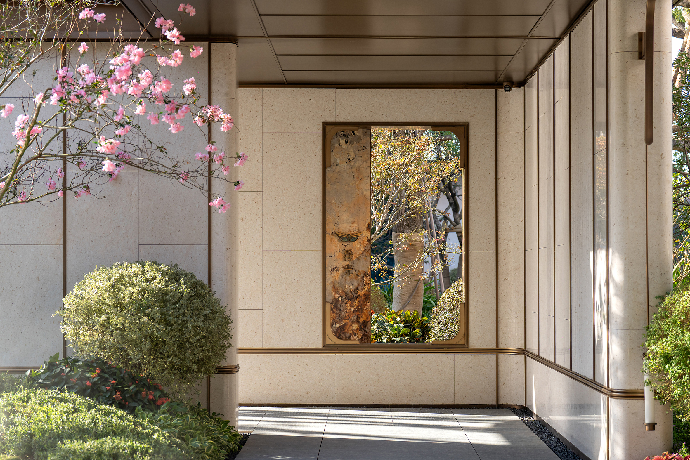C&D · Liyue Phase III Show Gallery takes "Poetic Orientalism" as its spiritual core, integrating a high-luxury hotel-style homecoming experience with local cultural narratives to create a sustainable community entrance space that unites aesthetics, functionality, and ecology. Drawing inspiration from the winged motif of the Rolls-Royce "Spirit of Ecstasy," the design team crafted a 45-meter-wide and 15-meter-high wing-spread gateway. This iconic structure not only enhances the ritual of returning home but also improves all-weather accessibility through a spacious rain-free drop-off area.