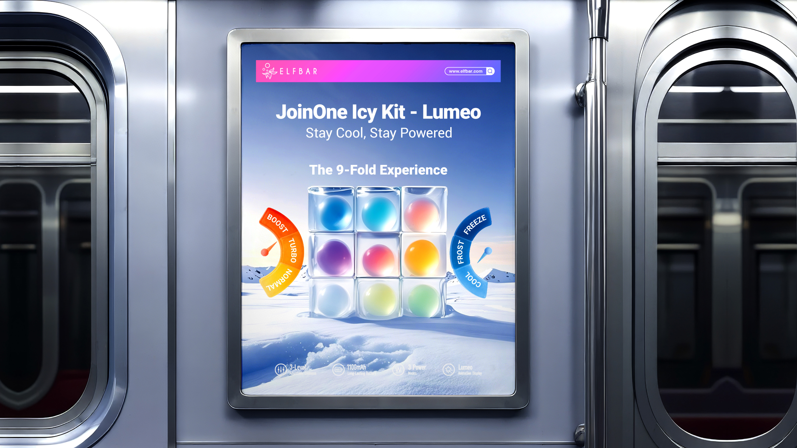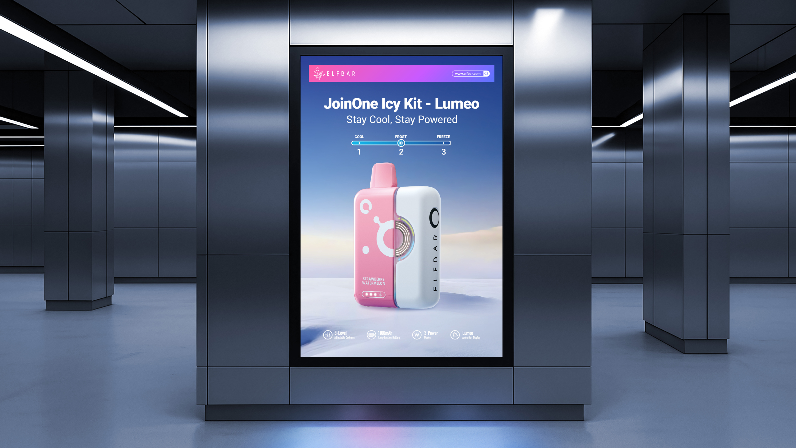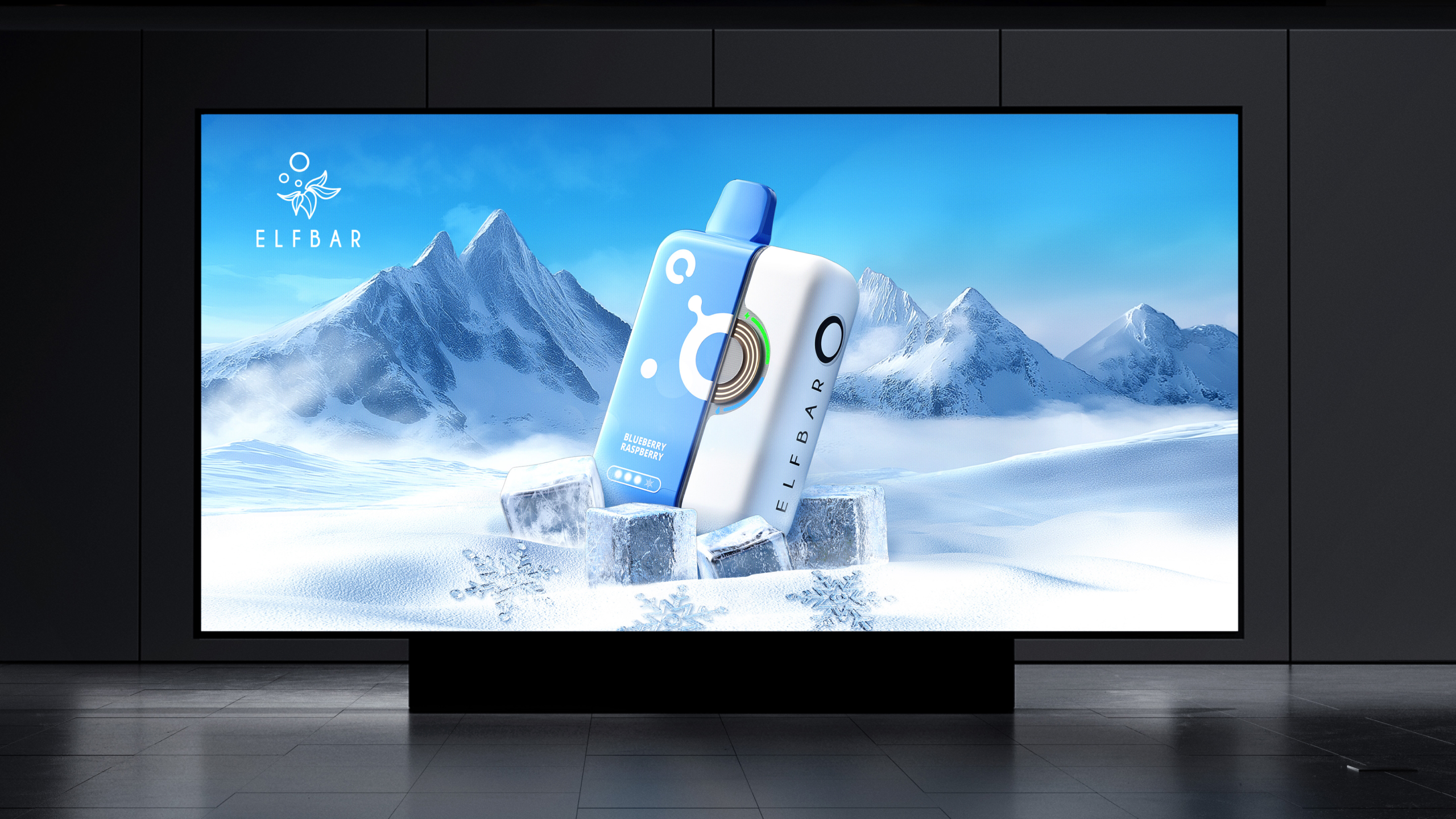 Themed on ‘Stay Cool, Stay Powered’, the design conveys a sleek aesthetic that combines clarity and strength, projecting a modern and enduring sense of style. Visual elements such as snowflakes, faceted ice cubes, and geometric arrows intuitively communicate the concepts of ‘coolness” and ‘power’, instantly immersing consumers in the product’s unique appeal. As for color palette, cool tones (blue, purple, ice white) are balanced with warm accents (orange, pink), resulting in a sharp contrast to meet consumers’ aesthetic taste and create a distinctive, memorable visual identity. Functionally, the intelligent screen integrates interactive features, while also elegantly displaying battery levels and power modes. This transforms the product from a conventional e-cigarette into a fashionable high-tech accessory, and allows users to easily monitor the device status at a glance, contributing to a convenient and engaging experience. On the product and packaging, graphic and textual information is presented in a modular, centered, and symmetrical layout. Key details (flavors, functions, and modes) are highlighted in high-contrast color blocks to facilitate quick identification and understanding. The KV composition employs generous white space and dynamic diagonal lines to position the product as the focal point, effectively capturing consumers’ attention.